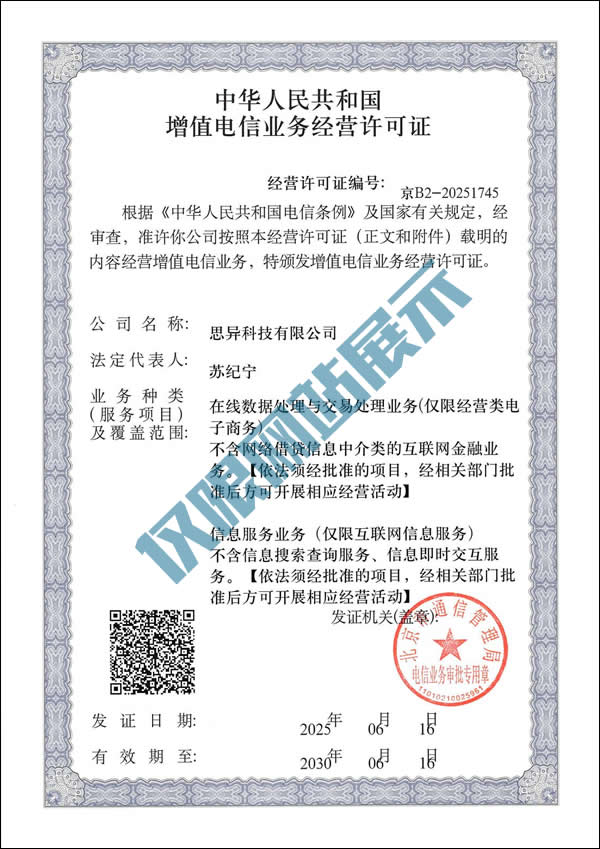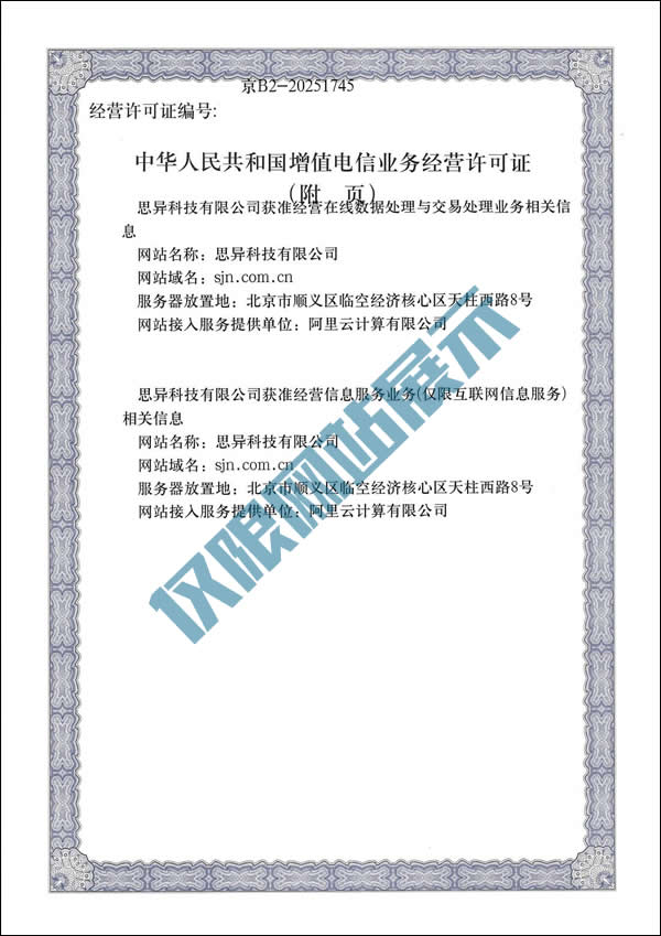 本站信息服务业务、在线数据处理与交易处理业务均由思异科技有限公司代为完成,业务域名 pay.sjn.com.cn